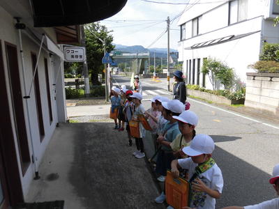 町たんけん①② みんなで並んで歩いて見学に行きました。2学期は、班ごとの活動になります。