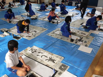 3・4年生が書き初めの練習をしました。地域の書道の先生室井先生が丁寧に教えてくださいました。3年生は「友だち」、4年生は「美しい空」を条幅一杯に元気よく書きました。1月の書き初め大会を目指して練習が始まりました。