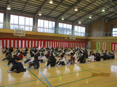 令和5年度修了式を行いました。6年生が卒業して全校児童が初めて集まると、寂しい気持ちと、いよいよ進級を迎える頑張ろうとする気持ちがありました。