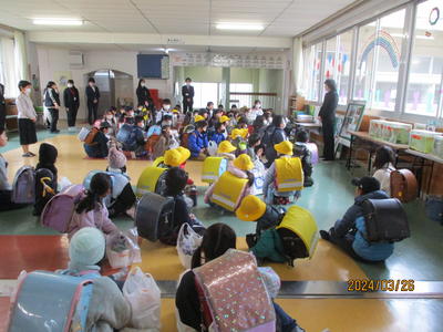 集団下校は雨のためギャラリーで集合しました。新班長の頑張る気持ちが伝わります。子供たちの伸びようとする気持ちと一年間の成長を感じる一日となりました。令和6年度も「元気に登校笑顔で下校」しましょう。