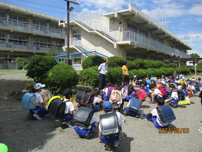 集団下校を行いました。スクールガードリーダーの富田先生から、もし登下校中に雷がなったり大雨でこまったときには、「子ども安全協力の家」にお願いして雨宿りさせてもらうことをお話いただきました。集団登下校は子供たちの助け合いをうみだす安心な取組です。