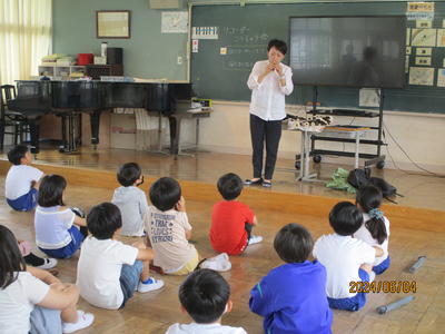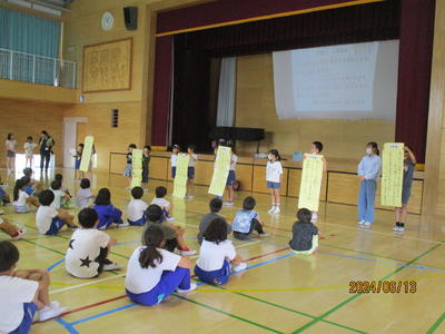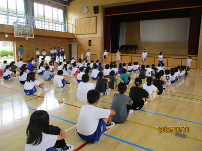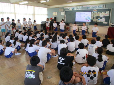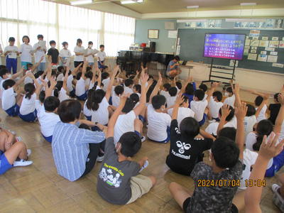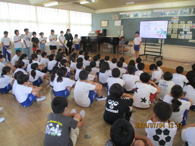 音楽集会を行いました。七夕さまとドレミの歌を歌いました。全校の歌声が体育館に響きました。