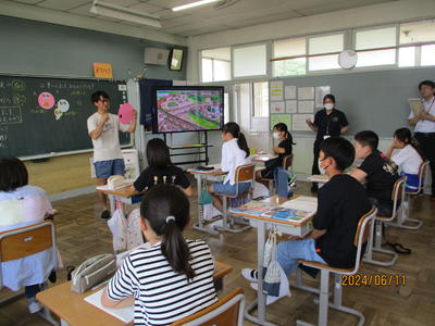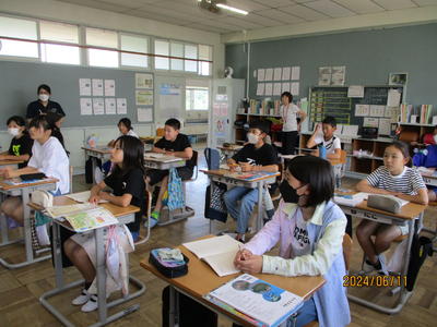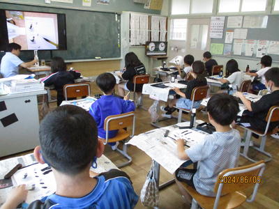 6年1組で社会科「縄文のむらから古墳のくにへ」の研究授業を行いました。子供たちは狩猟採集や農耕の生活の資料から、むらからくにへと世の中が変化していく過程を考えました。争いをしないやさしさのある考え方をする子供たちです。
