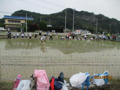 地域づくり協議会福祉部、区長、センター、JA青壮年部、環境保全会の皆様にお世話になりながら、力を合わせて田植えを完了しました。お世話になった皆様ありがとうございました。