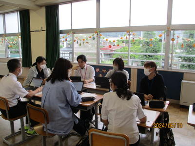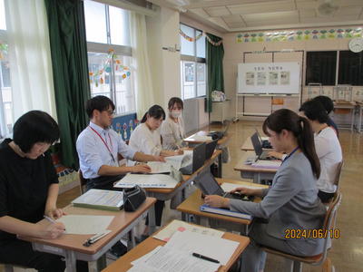 放課後の一ノ宮小・吉田小・丹生小にて、3校合同校内研修を行いました。吉田小には学校生活部会の先生方が集まって、さくら小の生活や学習の進め方について、児童会について、そして体育着について話し合いました。3校職員全員で新しい学校づくりを進めます。