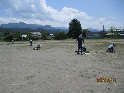地域づくり協議会の皆様による校庭の除草作業が行われました。大勢の皆様が西グランドに集まってくださり、校庭の雑草をきれいに片付けてくださいました。本当に力強い応援をいただいておりますこと、心より感謝申し上げます。ありがとうございました。