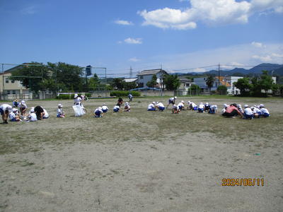 集会の時間には西校庭の草むしりをしました。短い時間でしたが全校の子供たちが草むしりに集中しました。SSVの皆さんにもお手伝いいただきました。ありがとうございました。