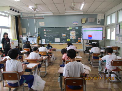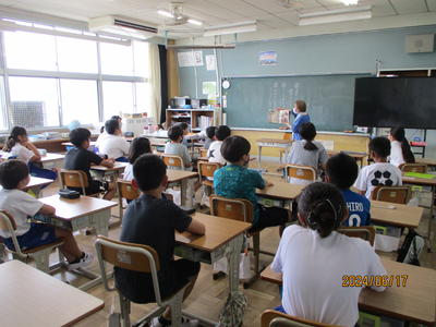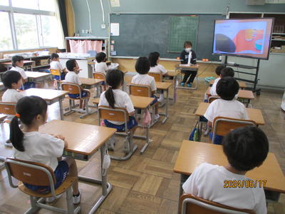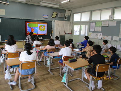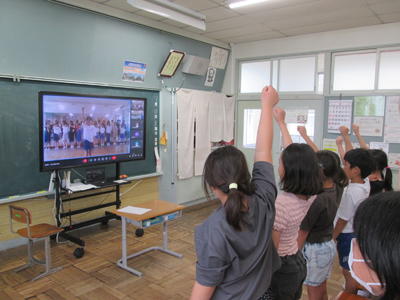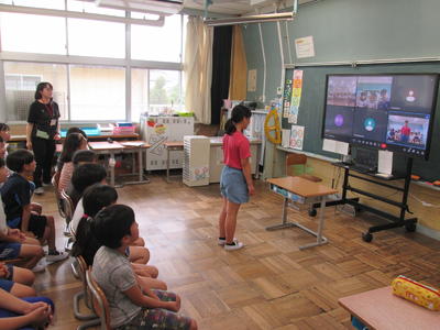 3年生が一ノ宮小・丹生小の3年生とオンラインで交流会をしました。それぞれの総合的な学習の時間の発表をしたり、校歌を紹介したりして3校の子供たちが交流しました。2学期には対面で交流会を行います。友達が増えることはすばらしいことだと子供たちの様子を見ていて思いました。