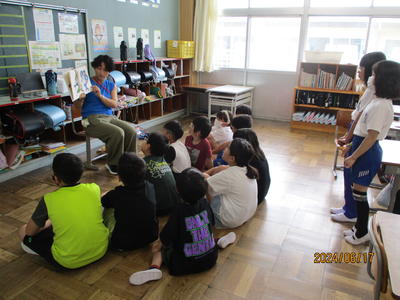 1・2年生の教室で図書委員の子供たちが読み聞かせをしました。読んでもらった子供たちは「たのしかった!またよんで!」と、図書委員の子供たちは「緊張した!!!」と、図書委員の素敵な取組が始まりました。