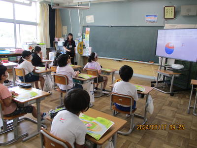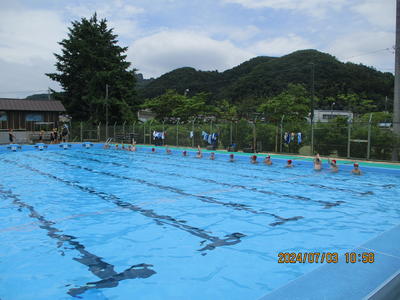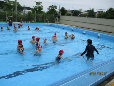 3・4年生が水泳学習をしました。暑い日になりましたので水泳日和です。今年の目標に向けて頑張ります。