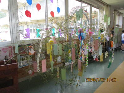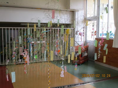 今年も神戸さんから竹をいただき、全校児童のみごとな七夕飾りがギャラリーに飾られました。神戸さんありがとうございます。素敵な飾りのおかげで、吉田小学校に入ると竹の清々しい香りがします。みんなの願いが叶いますように!