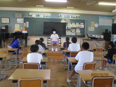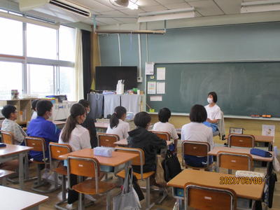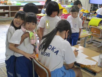 西中の3名の生徒が2日間職場体験学習を行いました。子供たちとの2日間を振り返って、とにかく子供たちがかわいくて楽しかったと、一人一人が自分の考えをもっていてすごいと話してくれました。6年生には、中学校の生活や友達のこと、部活のこと、6年生が知りたいことを分かりやすく教えてくれました。そして、先生の仕事のやりがいは、みんなの成長の輪の中にいることと表現してくれました。2日間ありがとうございました。