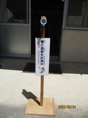 暑さに備えて保健室前に熱中症計の設置が始まりました。熱中症計で子供たちの校庭や校外での活動を決めていきます。ご家庭では朝ご飯をしっかりと食べさせ、帽子や水筒の準備もお願いいたします。水筒の中身は水、お茶、スポーツドリンクなど、ご家庭の判断でお願いします。水筒が空になったときには、学校の水道から水を入れて帰りにも飲めるようにします。