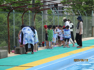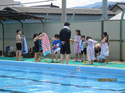 いよいよ水泳学習が始まりました。今日は1・2年生がプールに入ります。SSVの方々に見守られながら子供たちは安心して活動しました。まだ水は冷たかったようですが、「楽しかった!」と教えてくれました。