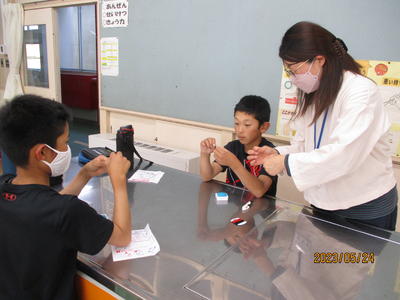 5年生が家庭科で初めての手縫いをしました。まずは玉結びと玉留めの練習です。SSVの方々にも教えてもらいながら根気よく取り組みました。