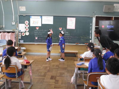 2年生の子供たちは「友だちとなかよくしよう」を題材に、スクールカウンセラー・養護教諭・担任のTTで学級活動をしました。