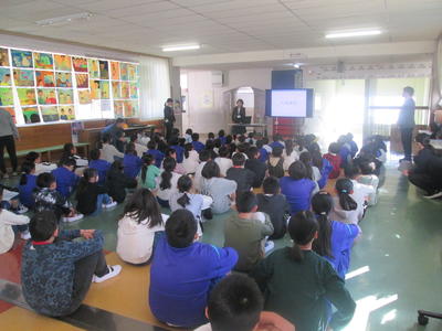 人権集中学習の始まりに人権講話をしました。言葉選び絵本「ふわふわとちくちく」をもとににして、やさしい言葉 ふわふわ言葉を使うことの大切さを話しました。児童会からもふわふわ言葉あつめの提案がありました。やさしさや思いやり、そしてありがとうの気持ちを意識した生活をしていきます。