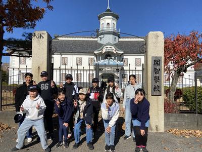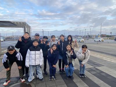 修学旅行が始まります。いい天気になりました。全員参加て元気よく出かけます!