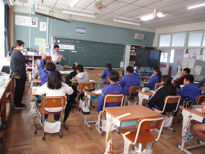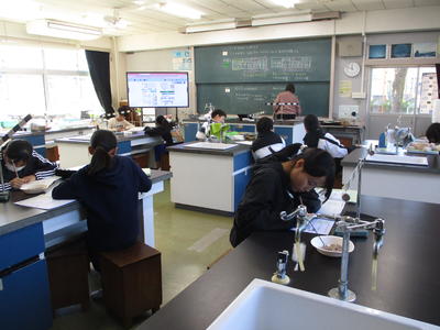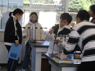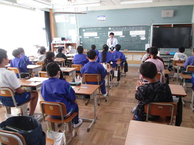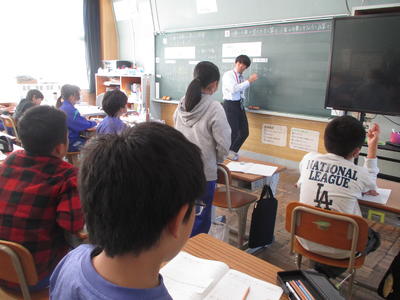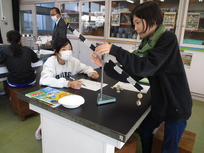 6年1組にて理科「てこのはたらきとしくみ」の研究授業を行いました。実験用てこが水平につり合うときのきまりを見付けます。子供たちは、予想を立てながら実験を進め、きまりを見付け出していきました。