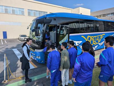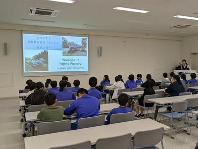 本日は、吉田小学校、丹生小学校の5年生合同で、太田のスバル工場見学です。