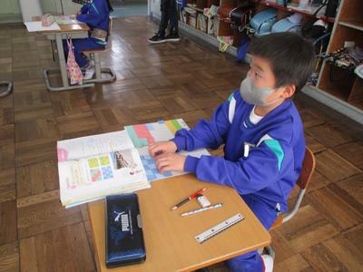2年1組で算数「形をしらべよう 三角形と四角形」の研究授業が行われました。子供たちは、同じ大きさの正方形、長方形、直角三角形をすき間なく並べて模様を作りました。その模様を友達と見合うことで、たくさんの大きさの違う正方形や長方形があること、模様が広がっていくこと、きれいな模様になることに、子供たちは気付きました。