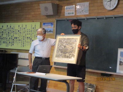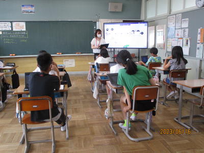 横田先生を講師に、吉田小学校の歴史について全校児童でお話を聞きました。吉田小学校150年の間には、これまでも場所や校舎を新しく変えてきたこと、いつも地域の子供たちが集まる大切な小学校であったことを、教えていただきました。そして、子供たちに、吉田小での思い出は大人になっても忘れないから、夢を持って、健康第一に、今を大切にしてほしいとメッセージをいただきました。