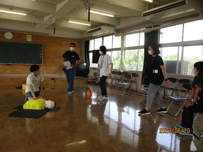 放課後、富岡消防署の方を講師に、先生とSSVが心肺蘇生法講習会を行いました。AEDの使い方、胸骨圧迫の仕方など、心肺蘇生法を練習しました。いざという事態が起こらないことを願いながら、本気で確認し練習しました。力を合わせて安全安心を守っていきます。