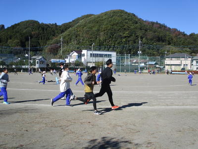 いよいよ明日は持久走大会です。今日は最後の練習、クラスごとに集まって走ります。明日の持久走大会では練習の成果を発揮して最後まで頑張りましょう。