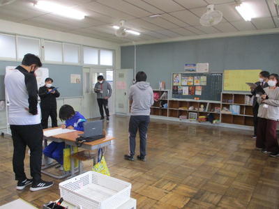 1年1組で学級活動「おしごとレベルアップ大さくせん」の研究授業を行いました。今年度山﨑先生は富岡市教育研究所の研究員として研究を進めていますので、研究所の皆さんと市内小中学校の大勢の先生がオンラインも使いながら参観してくださいました。子供たちはこれまで掃除や給食当番、係活動で頑張ってきた「おしごとレベルアップ大さくせん」の振り返りをしました。レベルアップすると自分も嬉しいけれど、クラスのみんなも気持ちよく過ごせると、子供たちは毎日のおしごとに意欲をもちました。
