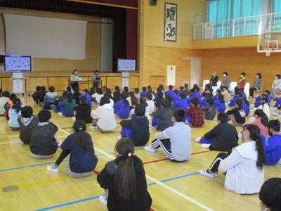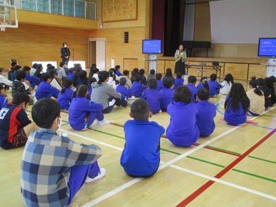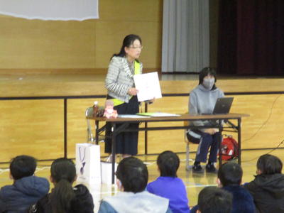 保護司の見澤様を講師に人権朝礼を行いました。絵本「パンツのなかのまほう」を使って、プライベートゾーンの大切さと、プライベートゾーンを自分で守り大切にすることを子供たちに教えていただきました。もしも、見られたりさわられたりしたら信頼できる大人に話すこと、そのようなことをした相手が悪く自分は守られなくてはいけないことも教えていただきました。吉田地区の保護司、更生保護女性会のみなさんにも参加していただき、子供たちが困ったときに相談できることを伝えました。