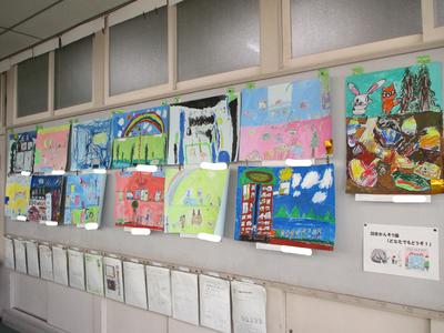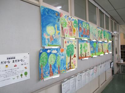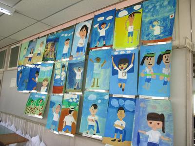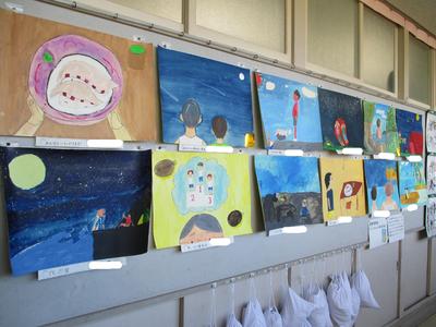 子供たちが大きな紙に向かって、たくさんの思いをもって描き上げました。ぜひお子さんと一緒に、観てください。お子さんの絵の話を聞きながら絵を観ると感心することがたくさんあります。校内絵画展を明日22日まで開催しています。どうぞご来校ください。