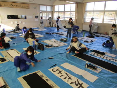 3・4年生が書き初めの練習をしました。地域の書道の先生室井先生が丁寧に教えてくださいました。3年生は「友だち」、4年生は「美しい空」を条幅一杯に元気よく書きました。1月の書き初め大会を目指して練習が始まりました。