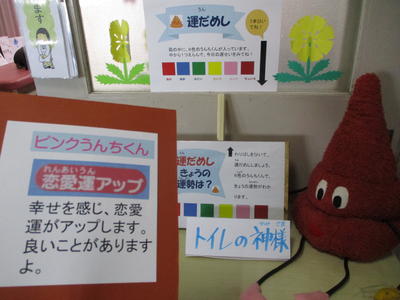 「トイレを気持ちよくきれいに使おう」をテーマに、オンライン保健集会が行われました。保健委員の子供たちのトイレあるあるの劇を見て、全校児童がトイレの使い方を考えました。子供たちの感想には、トイレは次の人のためにきれいに使いたい、トイレの使い方が分かった、トイレをがまんしないようにする、トイレをきれいにしたい、みんなが分かってくれなければと、子供たちはトイレの使い方が大切なことに気付きました。保健室前には運試しコーナーもあります。