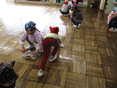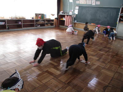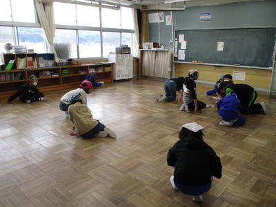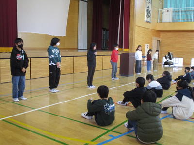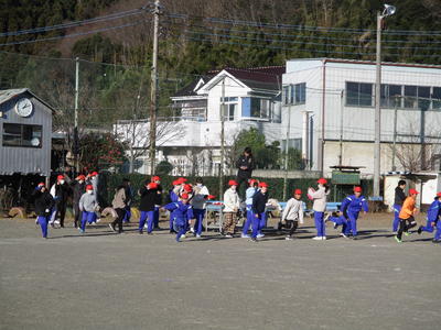2学期最終週、寒い朝になりました。全校で運動集会「しっぽとりおに」をしました。まずは運動計画委員が鬼、次は4年生と5年生が鬼、最後は6年生が鬼です。広い校庭を走り回りました。運動集会が終わる頃には暑くなりました。