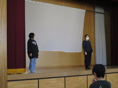 校歌を3番まで歌いました。伴奏者と指揮者です。終業式では代表児童が2学期に頑張ったことの発表をしました。校長式辞では2学期の頑張りを振り返り、すばらしい2学期となったことを確かめました。