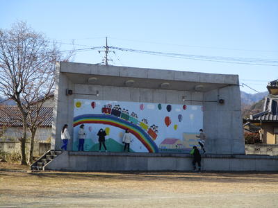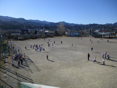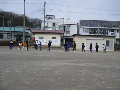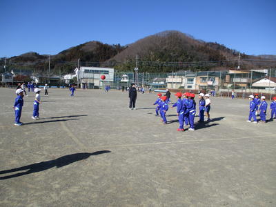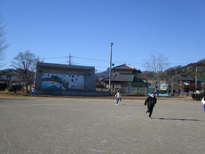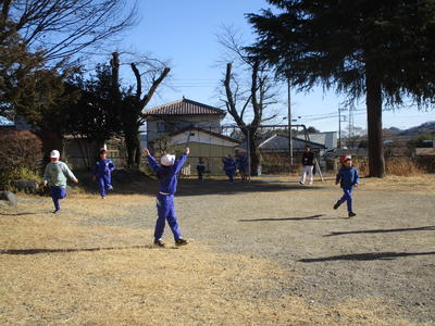 はあてが時々舞うなか、子供たちは元気に外遊びをしています。学年を超えて一緒に遊ぶ仲のよい子供たちです。