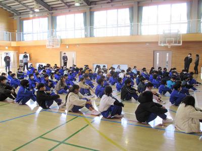 書き初め大会、群馬県体力優良賞、選挙ポスターコンクール、読書感想画コンクール、こどもの夢大賞、火災予防ポスター、上毛カルタ大会の表彰を行いました。6年生のしっかりとした明るい返事をお手本に、子供たちの返事がすばらしい表彰集会でした。