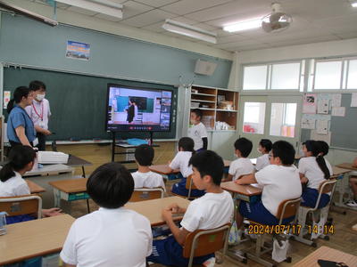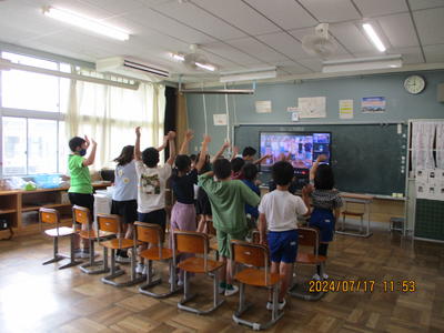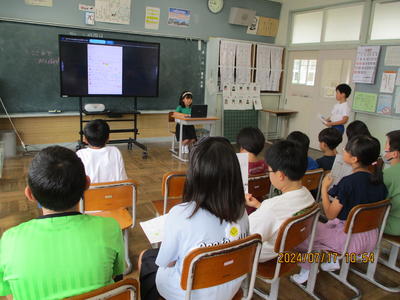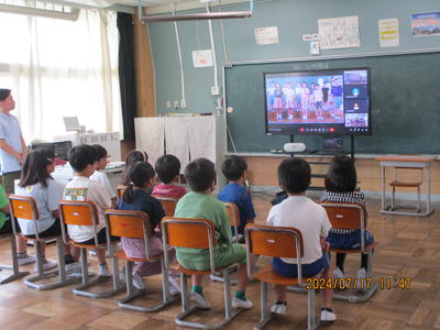 3年生が一ノ宮小・丹生小の3年生とオンラインで交流会をしました。それぞれの総合的な学習の時間の発表をしたり、校歌を紹介したりして3校の子供たちが交流しました。2学期には対面で交流会を行います。友達が増えることはすばらしいことだと子供たちの様子を見ていて思いました。
