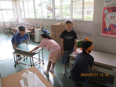 1・2年生は5校時、3年生以上は6校時に大掃除を行いました。1学期間お世話になった教室をきれいに掃除して、子供たちが帰った後先生がワックスを掛けました。吉田小学校へ感謝を込めてきれいに美しく生活します。