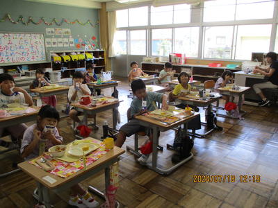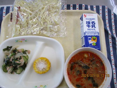 1学期最後の給食は、パックラーメン、牛乳、カットコーン、海藻サラダ、豆乳担々麺スープです。給食センターの皆さん、1学期間おいしい給食をありがとうございました。育ち盛りの子供たちにとって大切な給食を提供していただき、毎日楽しみにおいしくいただきました。夏休みもしっかりとした食事を続けましょう!