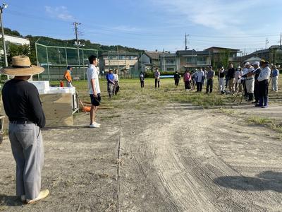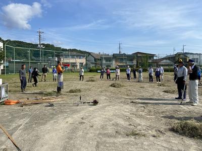 地域づくり協議会の皆様による校庭の除草作業が行われました。大勢の皆様が西グランドに集まってくださり、校庭の雑草をきれいに片付けてくださいました。本当に力強い応援をいただいておりますこと、心より感謝申し上げます。ありがとうございました。