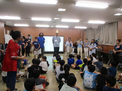 富岡市の児童生徒が生涯学習センターに集まって、Funglish Clubが開催されました。富岡市のALTが考えたゲームやアクティビティーで楽しく英語を学びます。吉田小からも6年生が参加しています。吉田小学校のジェリック先生とサミー先生も元気いっぱい活動していました。
