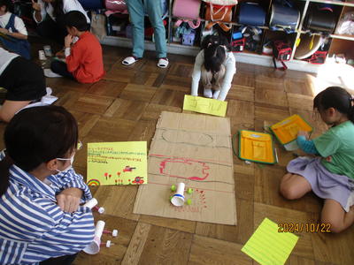こんどは、子供たちがなりきって、じっさいにやってみました。