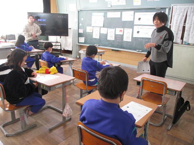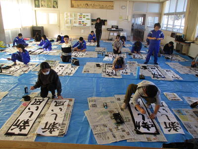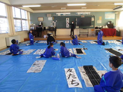 室井先生を講師に3年生と5年生の書き初め練習が行われました。3年生は「友だち」、5年生は「新しい風」を練習します。初めての書き初めに向かう3年生はわくわくした様子、5年生は集中して真剣そのものです。よい新年になりますね。