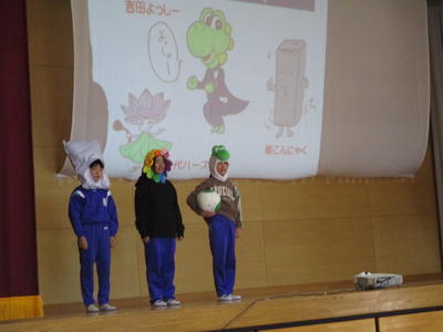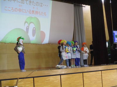 統合に向けて「こころの健康」をテーマに保健集会を行いました。保健委員の子供たちが吉田小のみんなで取り組んでほしいことを、ミニ劇「友達との関係をよくするために」にまとめて発表しました。子供たち全員が自分のタブレットを使ってアンケートに答え、自分はどんなタイプかを集計しました。そしてスクールカウンセラーの佐藤先生から、自分の気持ちは分かりやすい言葉で話すこと、そして、お互いの気持ちや意見を理解しあうことが大切と教えていただきました。遊びをことわることを想定して、みんなでワークをしました。毎日の生活の中であいさつをしっかりして、ふわふわ言葉をたくさん使うことが友達関係をよくすることにつながることを学びました。保健委員のみなさんありがとうございました。