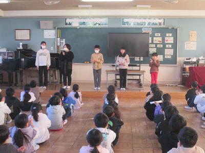 表彰を行いました。富岡市児童生徒美術展、小さな親切作文コンクール、国民健康保険健康ポスターコンクール、ぐんまこどもの夢大賞、読書感想文、群馬県バレーボール小学生大会、岡谷カップフレンドシップバレーボール大会とたくさんの表彰を伝達しました。終業式を行い、80日間の2学期が終了しました。代表児童の言葉からは、運動会や持久走大会で頑張ったこと、これからリーダーとして頑張りたいことなど、子供たちの2学期の頑張りとさらなる目標が共有されました。明日からは冬休み、挨拶やお手伝いをたくさんして年末年始の休みを充実させてください。