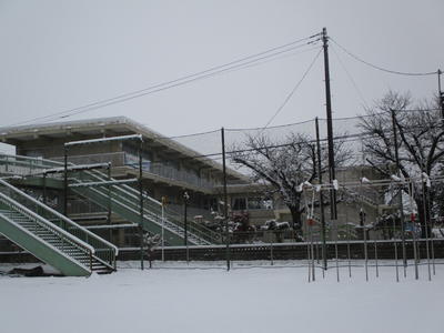 雪が積もりました。子供たちは2時間遅れで登校となります。気を付けて登校してください。